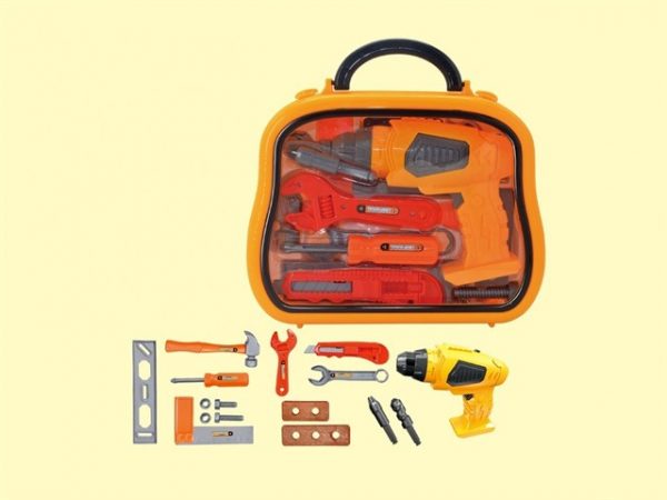 תיק כלי עבודה + מקדחה עובד עם סוללה
